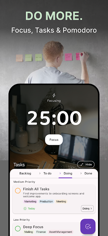 Be Focus आपको ऑफ़लाइन टास्क मैनेजर और पोमोडोरो टाइमर के साथ उत्पादक बने रहने में मदद करता है।