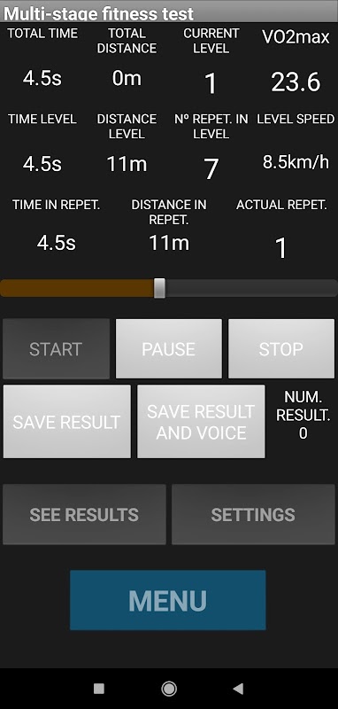 Leger Test करने के लिए UNIQUE एप्लीकेशन, जिसे कोर्स Navette या Beep Test भी कहा जाता है। आवेदन की अनुमति देता है: