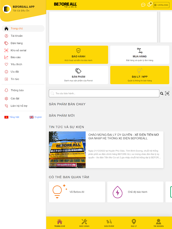 सभी से पहले एक ऐसा एप्लिकेशन है जो वास्तविक उत्पाद जानकारी को ऑनलाइन देखने की अनुमति देता है, जिससे सभी उपयोगकर्ताओं को सुविधाओं सहित खरीदे गए उपकरणों के बारे में जानकारी प्राप्त करने और देखने की अनुमति मिलती है: