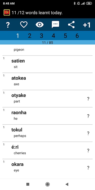 जैसे ही आप ऐप में उपलब्ध सैकड़ों सामान्य और लोकप्रिय मोहॉक शब्दों के माध्यम से अपने आप को पेस करते हैं। कुछ ही हफ्तों में, आपको मोहौक शब्दावली का एक आवश्यक ज्ञान होगा!