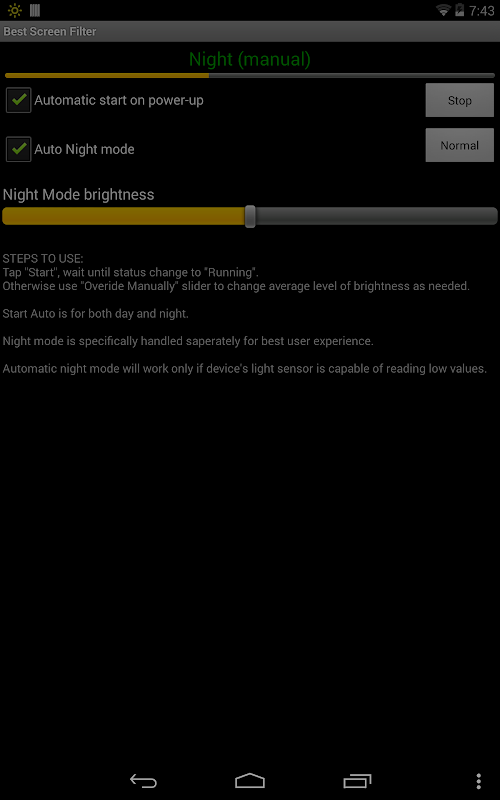 बेस्ट स्क्रीन फिल्टर स्वचालित रूप से पर्यावरण में परिवर्तन का पता चला है जब निश्चित अंतराल ( आवधिक मोड) , ( गतिशील मोड) में बैकलाइट को समायोजित करने का विकल्प है , या जब फोन नींद से जाग उठता है . यह मैन्युअल बैकलाइट को समायोजित करने के लिए संभव है . बस स्वचालित मोड अक्षम करें और आप एक पारंपरिक चमक उपकरण की तरह इस्तेमाल कर सकते हैं!