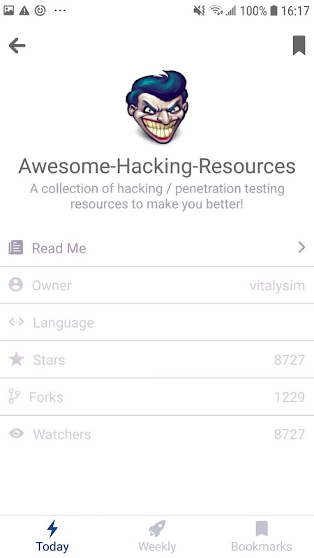 * Bookmark repos that you like or you want to exemine later