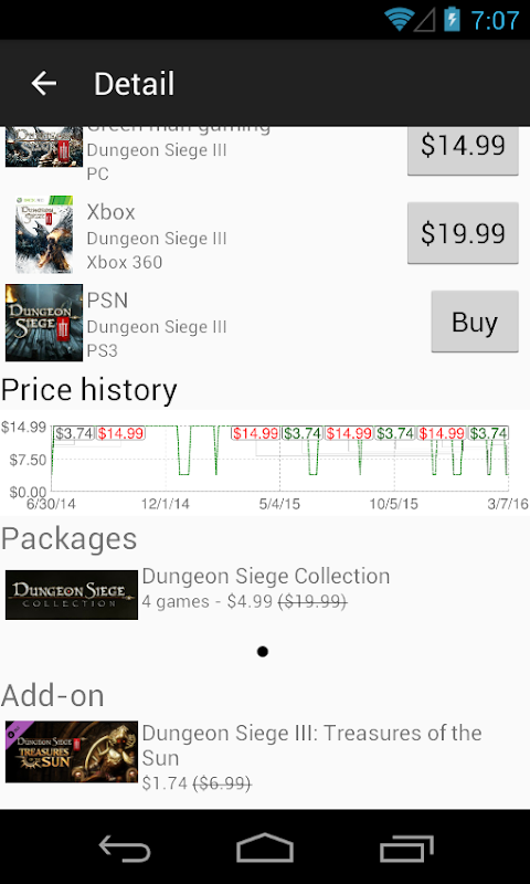 ऐप का मूल्य इतिहास प्रदर्शित होता है, जो आपको बताता है कि अतीत में कीमत में बदलाव हुआ है, अगर कीमत कम थी, कितनी देर पहले और किस कीमत पर।