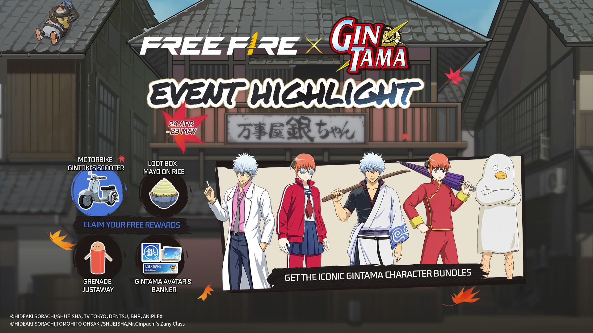 Free Fire x GINTAMA: Free Rewards and Missions
