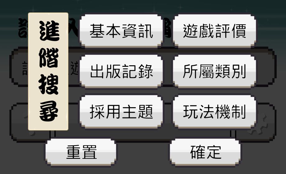 使用者除了可以依照名稱關鍵字查詢遊戲之外,還可透過進階搜尋設定主題或機制等更細膩的查詢條件,例如:搜尋5至8人可玩的冒險主題派對遊戲便可找到Shadow Hunters(暗影獵人)。