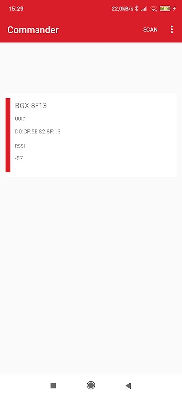 BGX कमांडर सिलिकॉन लैब्स BGX मॉड्यूल के साथ कनेक्शन और संचार प्रदर्शित करता है। ऐप मोबाइल Xpress लाइब्रेरी फ्रेमवर्क का उपयोग करके BGX उपकरणों के साथ इंटरफेस करता है, जो विशेष रूप से एंड्रॉइड ऐप में BGX के साथ BLE संचार को सरल बनाने के लिए डिज़ाइन किया गया एक कोड बेस है। इस ऐप के लिए सोर्स कोड और मोबाइल Xpress लाइब्रेरी https://github.com/SiliconLabs/wireless-xpress पर पाया जा सकता है