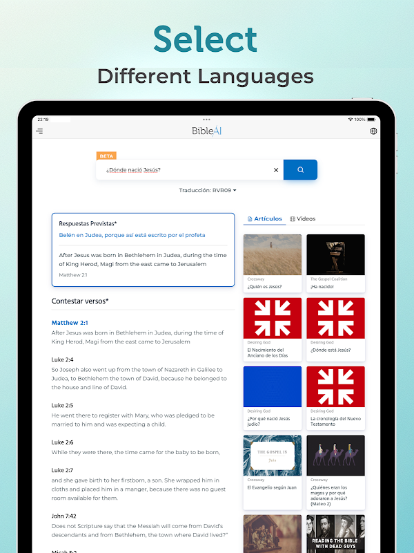 बाइबल एआई एक उन्नत बाइबल खोज इंजन और बहुभाषी बाइबल अध्ययन उपकरण है।