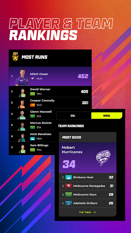 बिग बैश ऐप बीबीएल और डब्ल्यूबीबीएल का आधिकारिक घर है। मैदान पर सभी गतिविधियों से अवगत रहें और दुनिया की सर्वश्रेष्ठ क्रिकेट लीग के पर्दे के पीछे जाएँ।