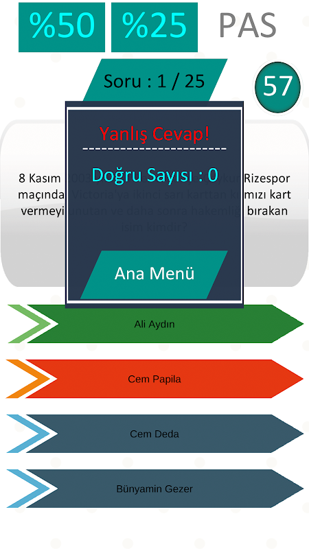 Pas joker hakkınız ile bilemediğiniz soru yerine başka soru gekecektir ve bu sayede oyunu kaybetmemiş olacaksınız.