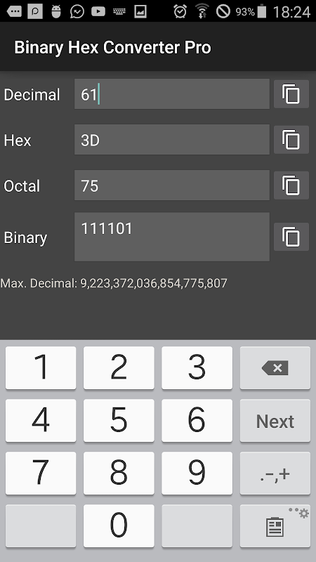 Binary Converter Pro is a simple application to perform transformations between the most used computer numbering systems. The application supports the following numbering systems: