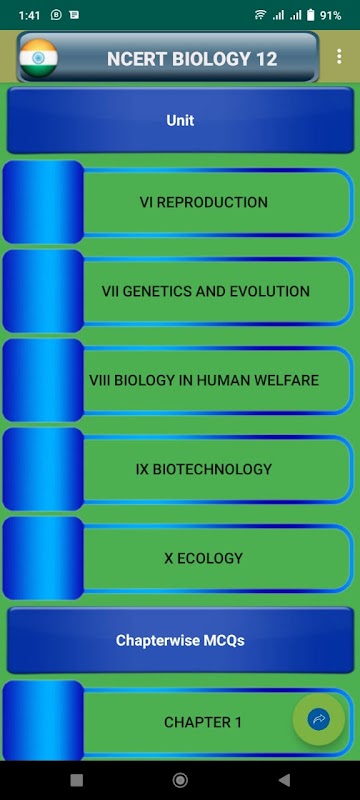 यह ऐप एनसीईआरटी कक्षा 12 जीव विज्ञान पाठ्यपुस्तक से अध्याय-वार पाठ्यपुस्तक, पीडीएफ समाधान और महत्वपूर्ण विषय प्रदान करता है।