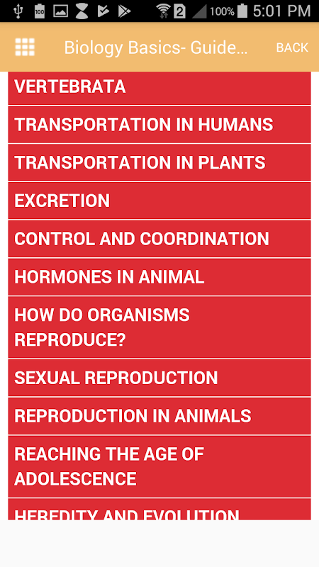 this app has information related to structure and functions, the fundamental unit of life, tissues related information, animal tissue , diversity in living organisms, plantae kingdom, animalia kingdom , vertebrata related information , transportation in humans ,transportation in plants, excretion related information ,control and coordination, hormones in animal, how do organisms reproduce? ,sexual reproduction related information, reproduction in animals, reaching the age of adolescence, heredity and evolution, life processes related information ,respiration related information, microorganisms, why do we fall ill, natural resources , our environment ,conservation of plants and animals, classification of organisms ,cell division, virus related information, bacteria related information, fungi related information. the roots,the plant stem ,the plant leaf, the flowers, the fruit, plant diseases,the blood, blood group, human brain, skeleton system, endocrine system related information, endocrine diseases related information