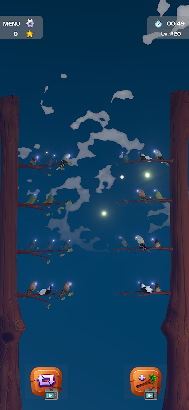 रणनीति बनाएं: उच्चतम स्कोर प्राप्त करने के लिए संभव कम से कम चालों का उपयोग करके पक्षियों को व्यवस्थित करें.