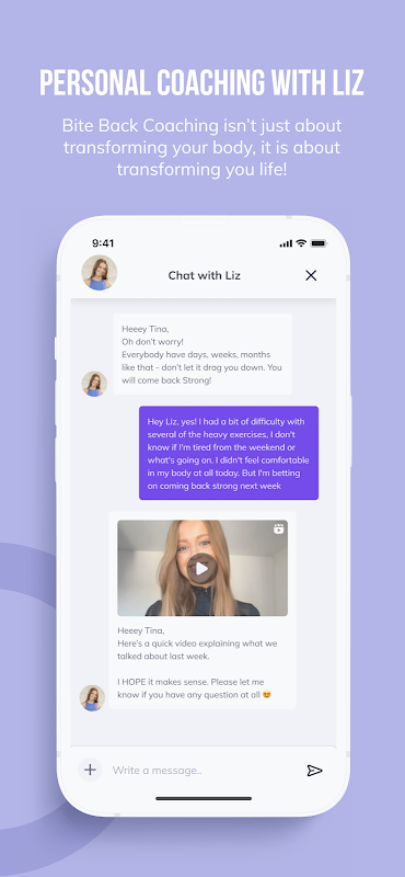 लिज़ ऑनलाइन कोचिंग के साथ बाइट बैक आपके लिए लिज़ 1-2-1 के साथ मानसिक और शारीरिक रूप से सर्वश्रेष्ठ संस्करण बनने का मौका है।