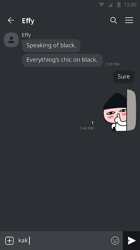 इसे और मज़ेदार बनाने के लिए KakaoTalk पर ब्लैक थीम का उपयोग करें।