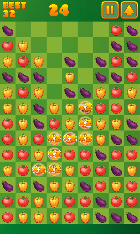 एक बहुत ही नशे की लत उन्मूलन खेल, यह याद नहीं है! आप 3 या अधिक एक ही सब्जियों के समूह नल। एक स्तंभ स्क्रीन के ऊपर पहुंचता है जब तक संभव के रूप में कई समूहों टैप करें। गियर इस नशे की लत और आराम के खेल के लिए ऊपर और तुम घंटे के लिए इस खेल के नीचे डाल करने में सक्षम नहीं होगा। बहुत प्यारा HD ग्राफिक्स। अंतहीन खेल, असीमित मज़ा।
