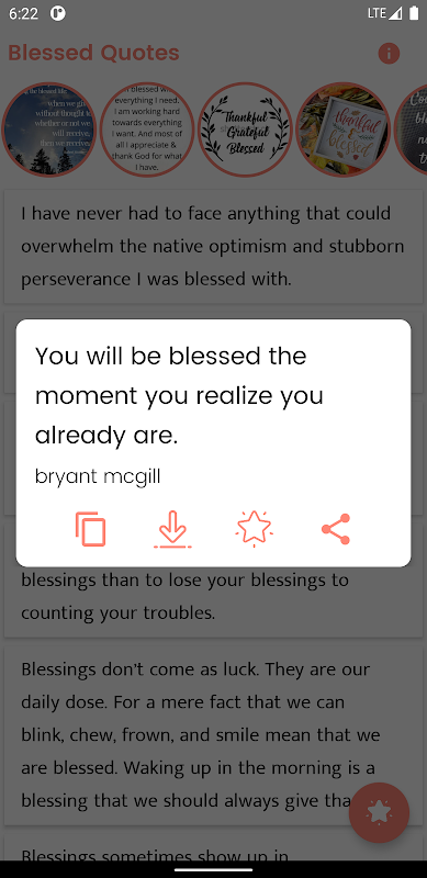 - धन्य उद्धरणों की प्रतिलिपि बनाना, साझा करना और डाउनलोड करना आसान है