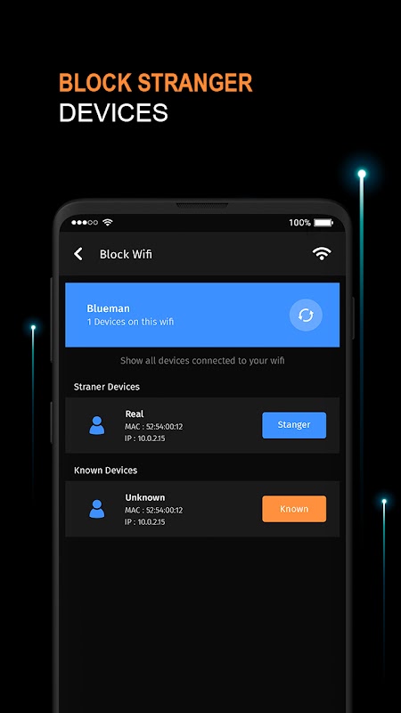 App ब्लॉक अजनबी उपकरणों और शक्तिशाली नेटवर्क उपयोगिताएँ (आईपी उपकरण) प्रदान करता है