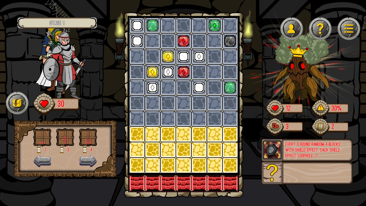 Pick your team with 3 adventurers, explore and clean the dungeon! Cast your skill based on Color Matching to destroy incoming blocks with every round and try to damage the dungeon’s boss when you can.