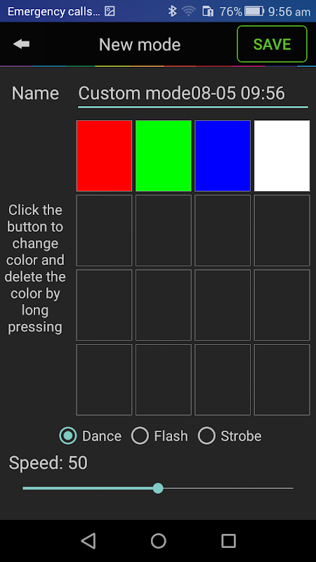 ब्लूटूथ स्मार्ट प्रकाश तार, अपनी पार्टी के लिए अधिक मज़ा लाता है! अलग स्क्रीन मोड से सक्रिय अनुप्रयोगों की एक किस्म के साथ ब्लूटूथ मौसमी लाइट के लिए एपीपी। ब्लू ई-लाइट स्वचालित रूप से ब्लूटूथ के माध्यम से अपने फोन की पहचान करेगा। तो फिर तुम उस में अनेक कार्यों का उपयोग कर सकते हैं। यह चुनिंदा एक मौजूदा आधार पर नियंत्रकों के विभिन्न प्रकार नियंत्रित करने के लिए इस्तेमाल किया जा सकता! विभिन्न नियंत्रक एप्लिकेशन केवल ब्लूटूथ 4.0 या उच्चतर चल रहे हैं और Android उपकरणों के लिए एंड्रॉयड 4.3 या उसके बाद चला रहे उपकरणों पर काम करता है अलग अलग रंग और functions.This के परिवर्तन को प्राप्त करने के विभिन्न प्रकार की रोशनी का समर्थन करता है,। कृपया ध्यान दें कि इस उत्पाद आधारित उपकरणों खिड़कियों पर काम नहीं करेगा।