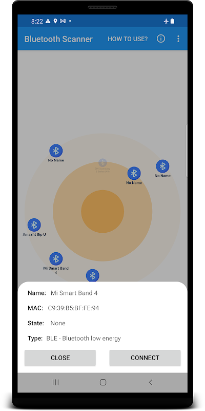 यह वह एप्लिकेशन है जो आपको आसपास के ब्लूटूथ डिवाइस को स्कैन करने में मदद करता है