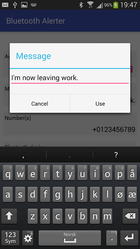 ब्लूटूथ Alerter - ब्लूटूथ कनेक्शन पर एसएमएस