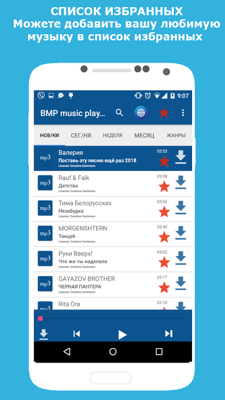 В приложении BMP Player вы можете слушать онлайн или скачать бесплатно самые популярные и рейтинговые песни.