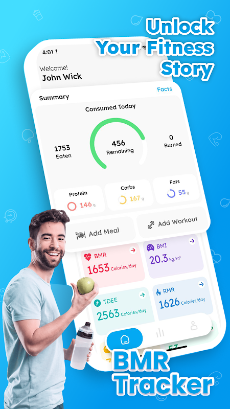 Food calorie calculator app is your food diary and weight loss diet app to make your health and fitness better. This daily calorie counter helps you stay focused and achieve weight loss goals. The app allows you to track calories and protein daily to focus on weight loss goals. If you’ve already set your weight loss goals, you can track your nutrition, macros, carbs, and calorie intake, along with your intermittent fasting schedule and daily protein needs. Simply download the app to find protein, carbs, and fats consumed in a day, add meals and workouts, and keep an eye on stats like BMR, TDEE, BMI, IBW, BFP, and more.