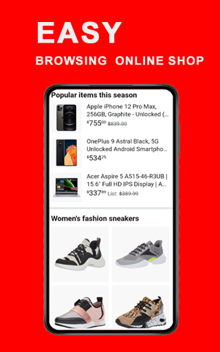 उपयोगकर्ता इस बोल्ड निजी वेब ब्राउज़र द्वारा लोकप्रिय खरीदारी साइटों पर जा सकते हैं।