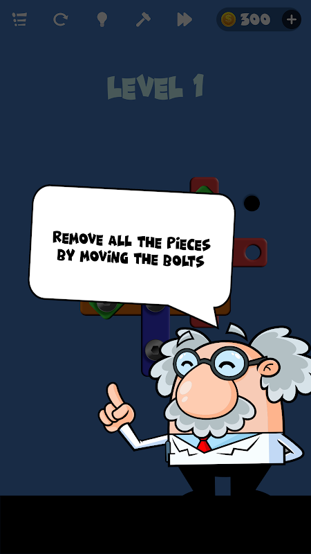 बोल्ट को खाली छेदों में ले जाकर टुकड़े निकालें। जब सभी टुकड़े गिर जाते हैं तो एक स्तर स्पष्ट होता है।