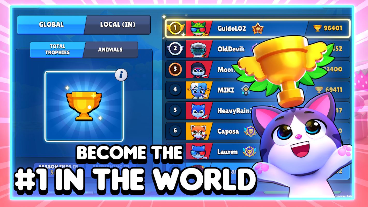 कई अलग-अलग गेम मोड में लड़ने के लिए शक्तिशाली क्षमताओं वाले प्यारे जानवरों को अनलॉक और अपग्रेड करें! अनोखी खालें इकट्ठा करें, दोस्त बनाएँ, टीम बनाएँ और लड़ाई शुरू करें!
