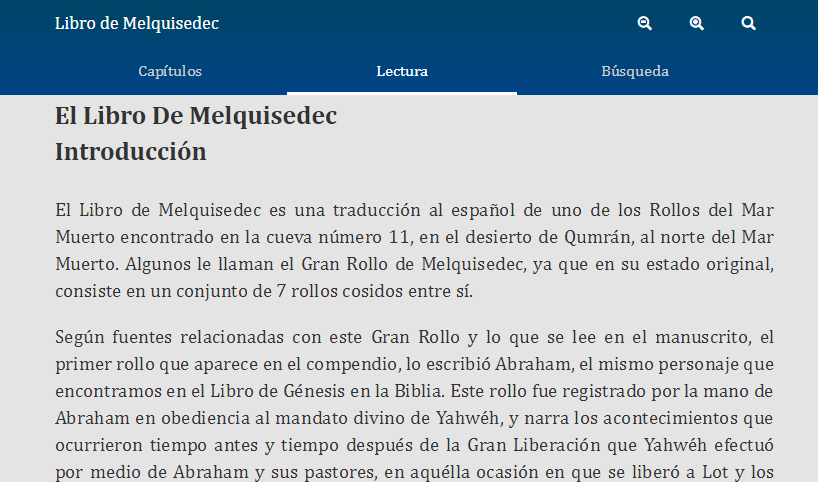 "द बुक ऑफ मेलक्विसेडेक" के नाम से जानी जाने वाली तीन पुस्तकों का स्पेनिश अनुवाद। मलिकिसिदक की पुस्तक लेखन का एक संग्रह है जिसमें शामिल हैं: