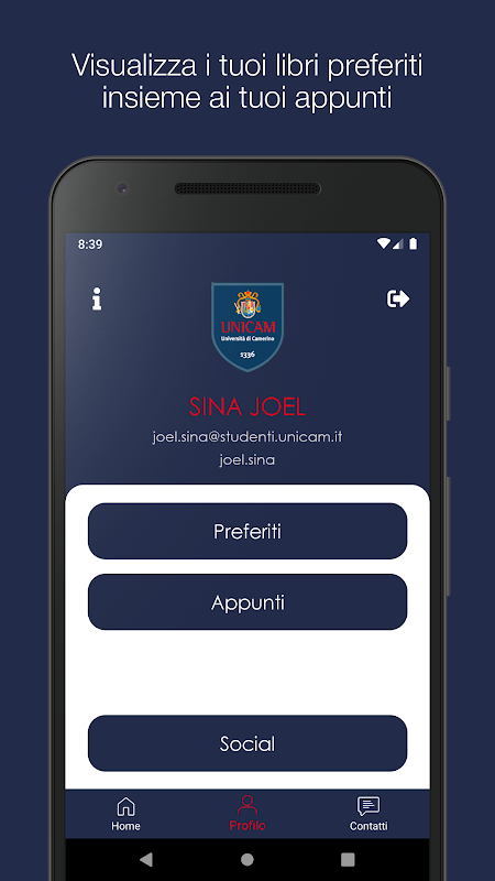 BooKeeper डिजिटल लाइब्रेरी के लिए कैमरिनो विश्वविद्यालय का ऐप है