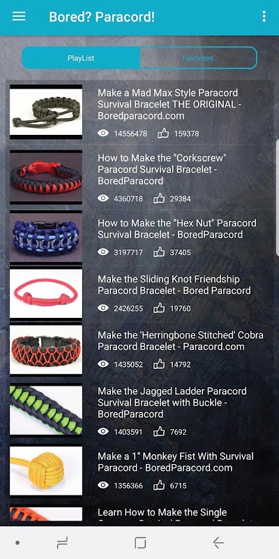 का आनंद आओ और paracord की दुनिया सीखते हैं। आप हमारे वीडियो ट्यूटोरियल है कि आसानी से, नवीनतम, सबसे अधिक देखे जाने के अनुसार क्रमबद्ध किया जा सकता है या सबसे अधिक पसंद के सैकड़ों मिल जाएगा। तुम भी पसंदीदा को बुकमार्क करें ताकि आप उन्हें अधिक से अधिक देख सकते हैं कर सकते हैं। हमारे वीडियो 20 लाख से अधिक बार देखा गया है और के रूप में पूर्ण सबसे अच्छा के कुछ माना जाता है। शॉन तुम बहुत बुनियादी कौशल आप सरल paracord वस्तुओं का उत्पादन करने की आवश्यकता होगी सिखा देगा। आप एक उन्नत "paracordist" कर रहे हैं, वहाँ आप के लिए और अधिक जटिल वीडियो के रूप में अच्छी तरह से कर रहे हैं।