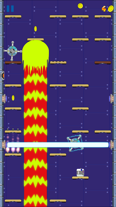 मंजिल लावा, यह बढ़ रहा है! अपने जीवन के लिए कूदो। जाल से बचें, बिजली और लेजर बंदूक जीवित रहने के लिए।
