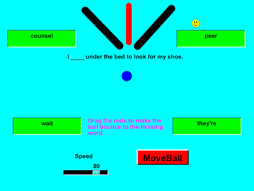 One word out of 684 is flashed and you must bounce the ball to the correct one of four that is shown.