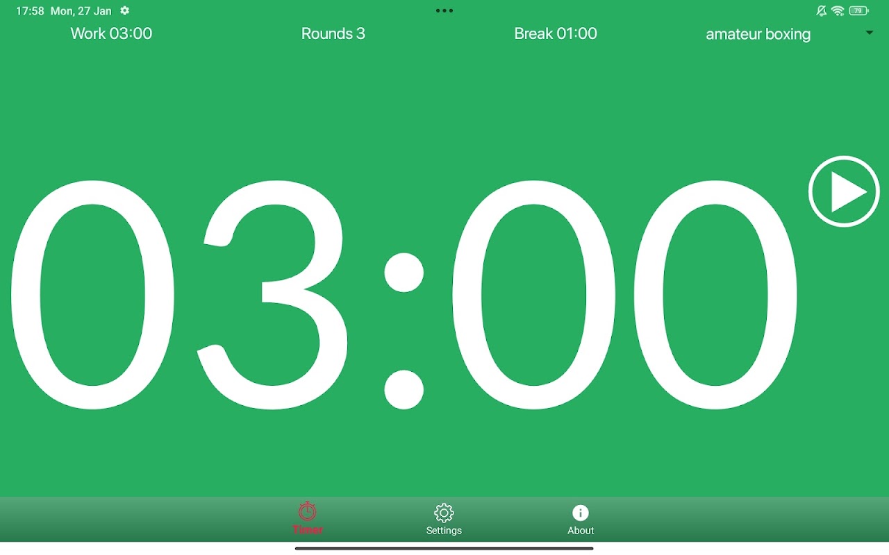 पेश है बॉक्सिंग टाइमर, आपके बॉक्सिंग वर्कआउट का बेहतरीन साथी। चाहे आप एक पेशेवर मुक्केबाज हों या फिटनेस के प्रति उत्साही, यह टाइमर ऐप आपके प्रशिक्षण सत्रों को अगले स्तर पर ले जाने के लिए डिज़ाइन किया गया है।