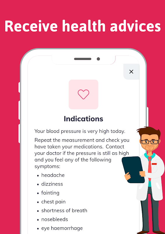 Note: This bp monitor is not intended for medical use. It supports a patient, however it does not replace professional medical advice. Also, this bp tracker app does not measure pulse or blood pressure. For the exact results, always use a medical pressure gauge.