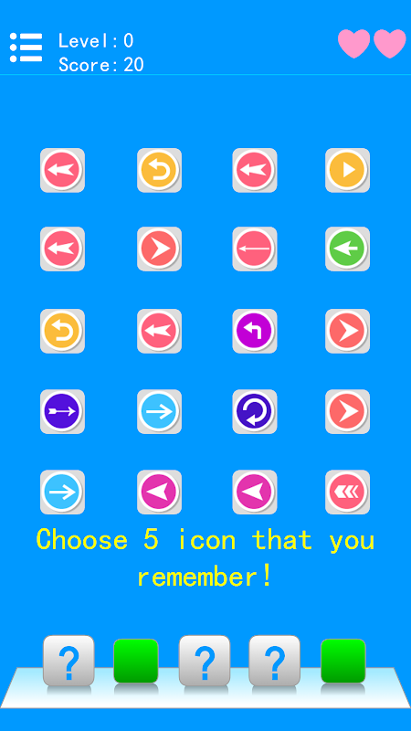 यह एक बहुत ही सरल और रोचक खेल है, जो आपके मस्तिष्क की स्मृति क्षमता का परीक्षण करने में बहुत मदद करता है। बहुत से लोग अपनी स्मृति क्षमता के बारे में चिंतित रहते हैं, हो सकता है कि वे अक्सर अभ्यास करके इसे बेहतर बना लें, साथ ही वे अपनी स्मृति क्षमता को बहुत बेहतर समझते हैं, जिसे अब आप आजमा सकते हैं। देखें कि आपकी स्मृति क्षमता कैसी है। आप अपने दोस्तों के साथ स्मृति क्षमता चुनौती खेल सकते हैं। कैसे खेलें: खेल में प्रवेश करने के बाद आप देख सकते हैं कि 5 आइकन हैं, आपको उन्हें याद रखना होगा, और फिर पैनल में दिखाई देने वाले आइकन को ढूंढना होगा, खेल में चेकपॉइंट के माध्यम से संचित कुल संख्या का रिकॉर्ड होता है। यह देखना बहुत आसान और मजेदार है कि आप कितने अंक प्राप्त कर सकते हैं। आप इस खेल को अपने दोस्तों के साथ भी साझा कर सकते हैं। खेल की विशेषताएं: आकस्मिक पहेली! संचालित करने में आसान! आभासी और वास्तविक दृश्य! सरल और मजेदार! स्टाइलिश ध्वनि! द्रव गति! यह मुफ़्त है! क्या आप तैयार हैं? शुरू करें