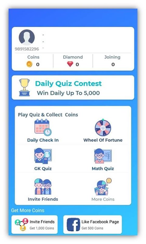 Play free quiz complete level and collect coins,invite your friends when your friend enter your invite code you and your friend get free coins.You can also participate in free quiz contest and win gift .