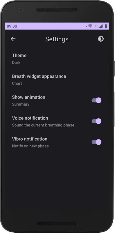 ऐप की विशेषताओं में से एक, अभ्यास के दौरान मापदंडों को ठीक से संपादित करने की क्षमता है। विभिन्न श्वास तकनीकों का अभ्यास करें जो संगीत, कंपन और दृश्यों के साथ हों।