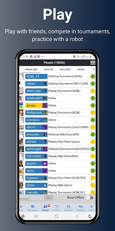 – Many tournament options, from free daylongs to ACBL national events