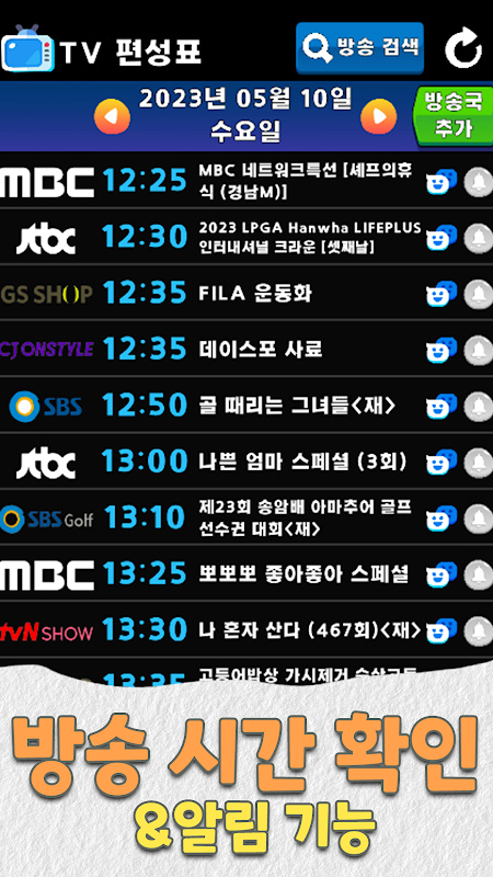 📌 स्थलीय प्रसारण, क्षेत्रीय प्रसारण और केबल प्रसारण समय की जांच करें (प्रसारण अधिसूचना का आरक्षण संभव है)
