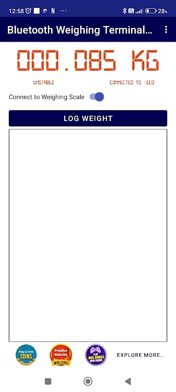 यह ऐप एक बहुत ही आसान तरीका है जिससे आप अपने फ़ोन को अपने वज़न मापने वाले तराज़ू (weighing scale) या मशीन से जोड़ सकते हैं। अब आपको वज़न के नंबर लिखने की ज़रूरत नहीं है, यह ऐप सीधे वज़न पढ़ेगा और उसे आपके लिए सेव कर लेगा। अगर आपको भारी चीज़ों, अपनी सेहत के वज़न या किसी भी चीज़ को बार-बार मापना पड़ता है, तो यह ऐप आपके लिए एकदम सही है।