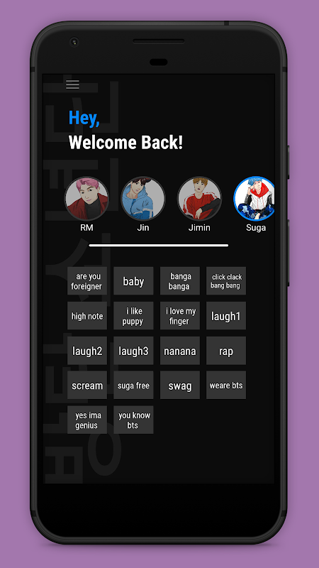 An app that contains all the sounds that BTS fans will love. You could find quotes and phrases from every member that you'll want to replay over and over again. Custom art done by us!