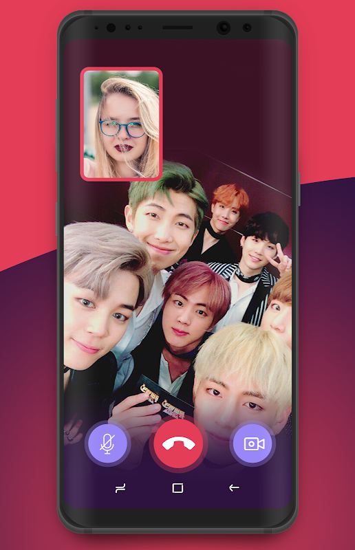 Bts Fake Call - Bts video call Prank is an application that helps you get a call right away from Jungkook, Hope,V, Suga ... talking to Bts, Looking at Bts members from the call, it is a dream for fans of Bts music group.