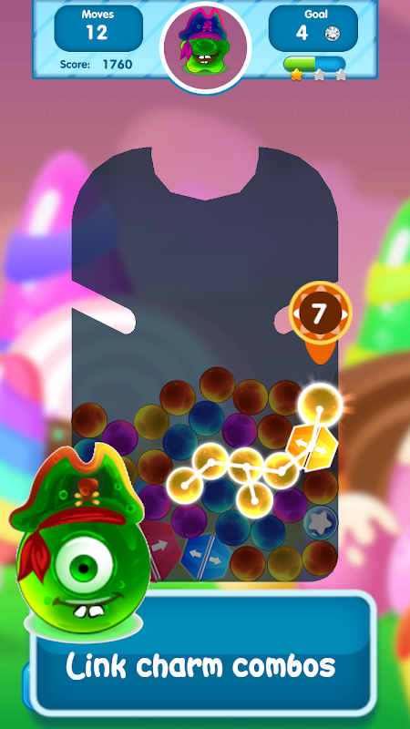 एक ही रंग के 3 या अधिक बुलबुले लिंक और चाल से बाहर चलाने से पहले लक्ष्य को पूरा करें!