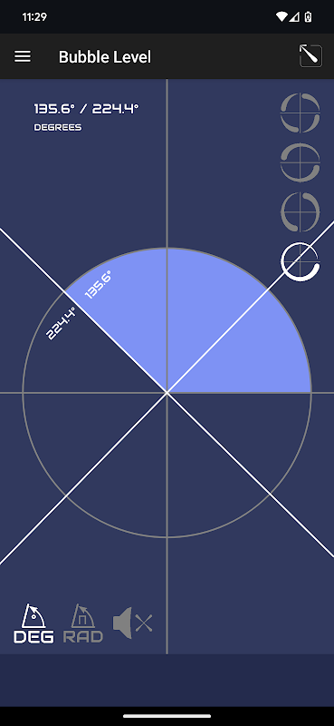 🌐 मल्टी-मोड फ़ंक्शनैलिटी: अपने पसंदीदा मापन मोड का चयन करें - 0-90 डिग्री, 0-180 डिग्री, या व्यापक 0-360 डिग्री में। चाहे आप तीक्ष्ण या वियोगी कोणों के साथ काम कर रहे हों, 'बबल लेवल' आपको सहायक होगा।