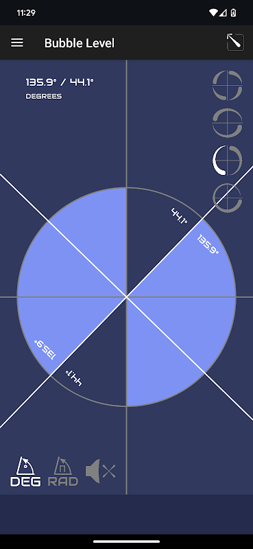 🔄 कोण इकाइयाँ: 'बबल लेवल' आपको किसी एक मापन इकाई में सीमित नहीं करता। डिग्री और रेडियन्स के बीच चयन करें, ताकि आपके प्रोजेक्ट के लिए आपको आवश्यक मर्जी मिले।