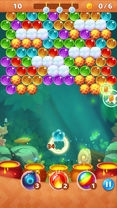 1.Make combinations of 3 or more bubbles that have the same color to make them burst.